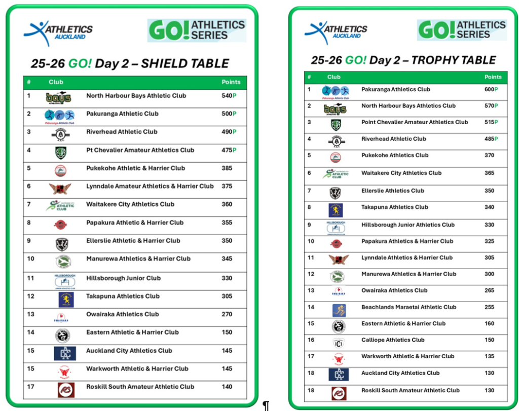 It is all to play for to find out which clubs will occupy the GO! Series Christmas Number 1 spot in Auckland after 20 December?  The more athletes you have at GO! Day 3, the more points you will accumulate.